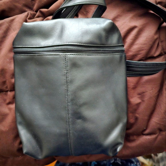 Single strap unzips into two for a backpack option. purse is H12" x W 9" x D 3". Double zipper to open. One zipper in front and one on the back. Slots for cards and has a keyring. Great condition