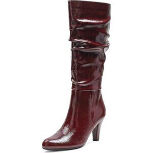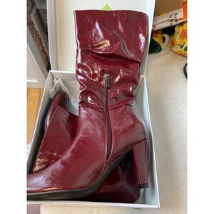 Knee High Boots Heel Pointed Toe Side Zipper Wine Size 9 NEW