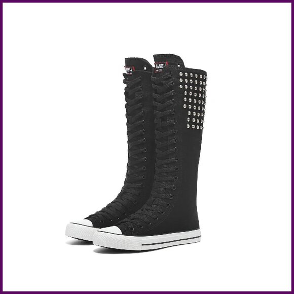 These chic knee-high sneakers blend a casual, simple style with versatile functionality for indoor and outdoor wear. The durable canvas and platform design offer comfort and traction for all-day activities.