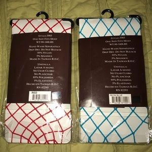 Great Halloween Accessories: 2 sets of fishnet knee highs. Red and Neon Blue, brand new, never worn. In original package and recommends 90 to 160 lbs, but I’ve worn at higher weight 190.
