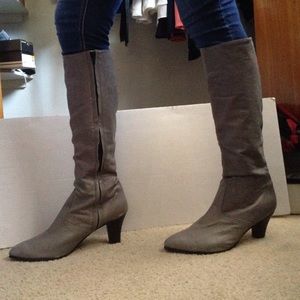 Boots made in Germany, knee high, pointed, never worn, and in good condition. There is also a maroon pair.