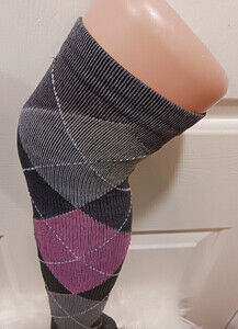 Knee High Women Socks In Argyle Pattern In Gray and Pink Size S/M. Good for shoe size 6 or smaller.