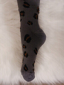 Knee High Socks With Leopard Spots In Gray Size S/M. Good for shoe size 6 or smaller.