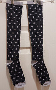 Knee High Socks With Small Square Pattern In Black Size L/XL. Good for shoe size 6-11.