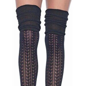 Knee Scrunch Stockings, Women's One Size OS, Black Soft Woven Socks with Reinforced Toe