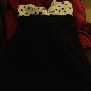 Chest area is black and white polka. Just simple dress. Knee length plain black at the bottom. Strapless. Never worn