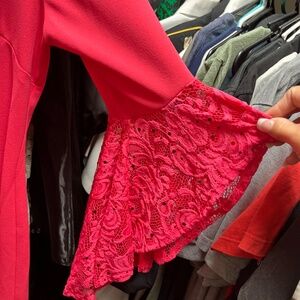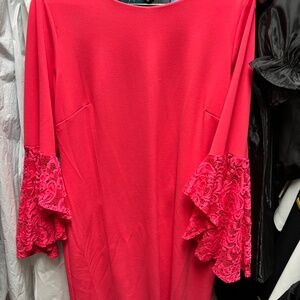 Coral pink dress knee length dress with 3/4 sleeves zipper in back of dress