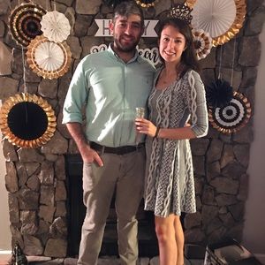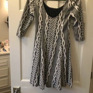 Float cocktail dress. Elbow length sleeves. Open back. Great print and color