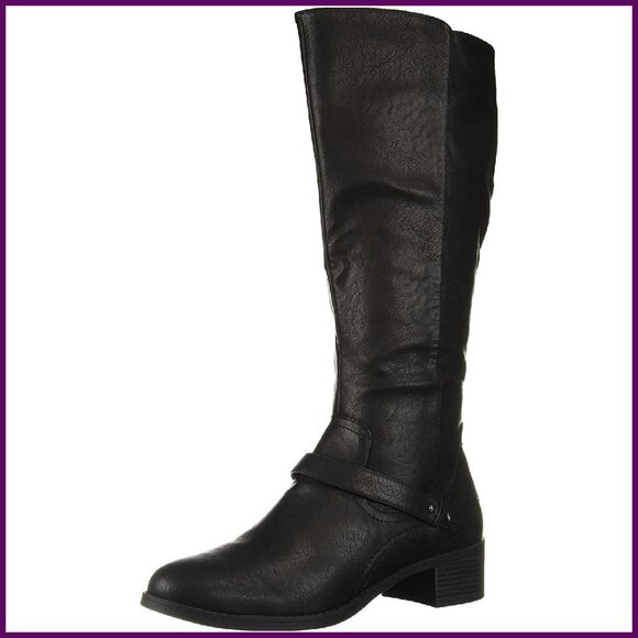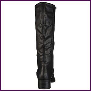 These modern knee-high boots combine retro-inspired style with practical comfort features. The stretch construction and adjustable fit make them a versatile addition to any fall wardrobe.