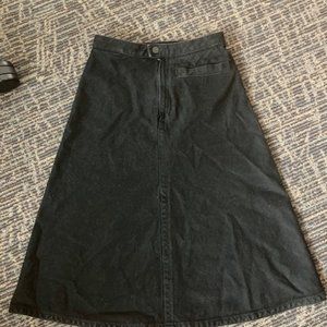 High-waited, black denim skirt. Comes from a smoke-free, animal-free home.