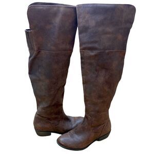 Knee high vegan leather distressed look boots