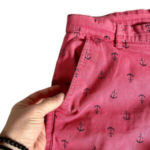 KnickerBocker Mens Chino Shorts Red Salmon Denim Anchor Ocean Print Sz 34