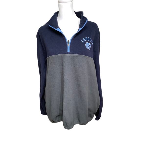 Features: Embroidered "Carolina" and UNC logo, quarter-zip front, adjustable drawstring hem