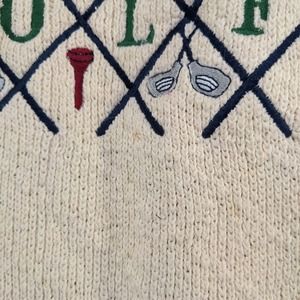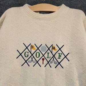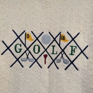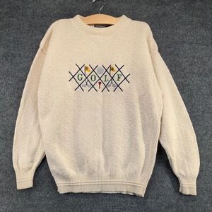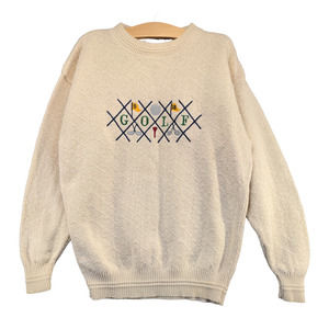 Knights Bridge Men's Spell Out Golf Sweater Cream Medium Embroidered Pullover