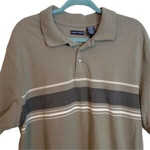 Knights Bridge Mens Sz XL Gray Green Striped Short Sleeve Polo Shirt