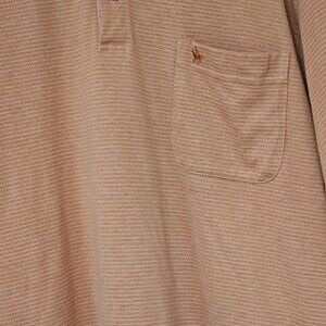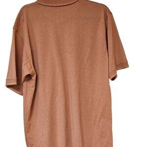 Knights Sportswear Mens Polo Shirt L Peach Striped Pocket Logo Polyester Cotton