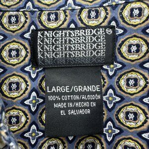Knightsbridge Shirt Mens Size Large Blue Yellow Button Down Batik Short Sleeve