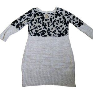 This Knit Animal Print Sweater Mini Dress is perfect for a chic, cozy look. Featuring a stylish animal print, it offers a flattering fit for casual or dressy occasions. Ideal for layering or wearing on its own, this dress is a must-have addition to your wardrobe. Brown, tan and black in color. Stretchy with a peekaboo hole in back.
