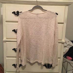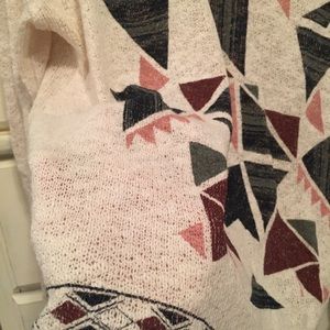 Beige / cream open knit sweater with pink / navy aztec design on front. Smoke free and pet free home.