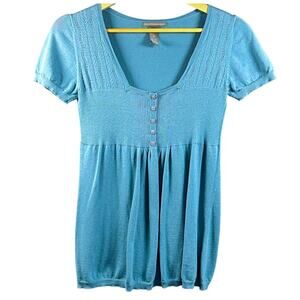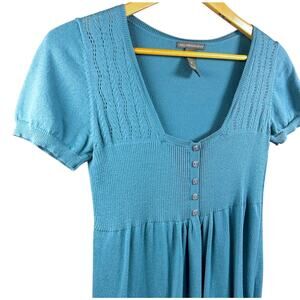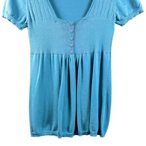 Knit Babydoll Pleated Buttons Short Sleeve Cottage Casual Coastal Women Medium