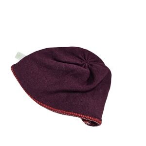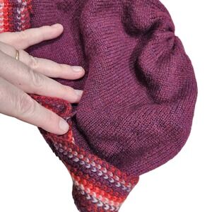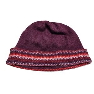 Knit Beanie Hat Winter Warm Striped Maroon Red One Size Lambswool Womens Winter