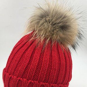 100% Acrylic Knit Cable Beanie with Real Fox Fur Pom