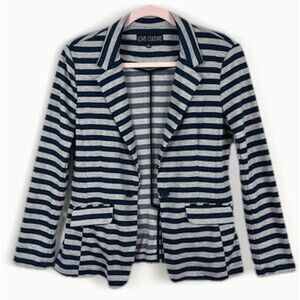 Love Culture Jersey Knit Blazer Jacket Womens SZ L Blue Stripes against Gray Lightweight Trendy Preppy Hipster