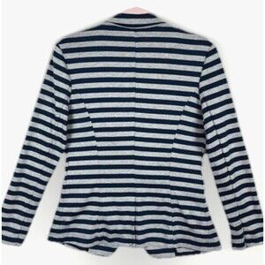 Knit Blazer Womens SZ LG Blue Stripes Gray Lightweight Preppy Trendy College