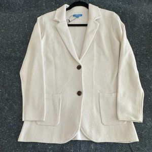 Knit Blazer w/Tortoise Shell Buttons - Women's Medium - Ivory