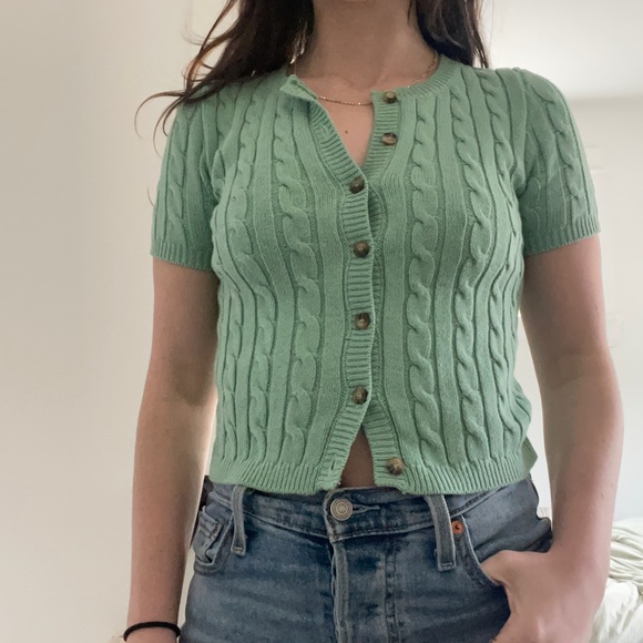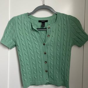 Forever 21 green knit button up! Stretchy material. Cute as is or unbuttoned with a tank underneath like a cardigan :)