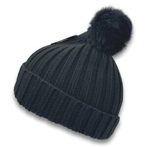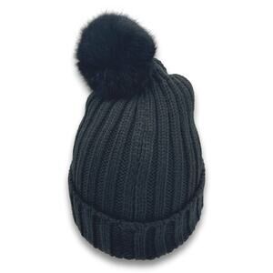 Black Knit Cable POM Beanie Thick Warm Soft Long Cuffed Ski Cap Winter Snowboard Hat