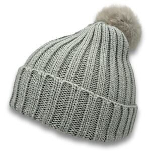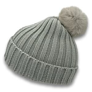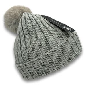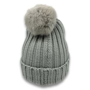 Gray Knit Cable POM Beanie Thick Warm Soft Long Cuffed Ski Cap Winter Snowboard Hat