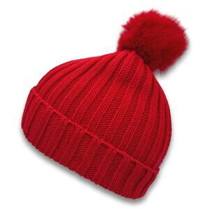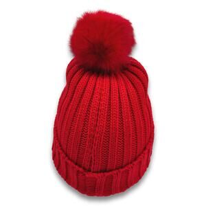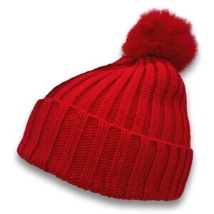 Red Knit Cable POM Beanie Thick Warm Soft Long Cuffed Ski Cap Winter Snowboard Hat