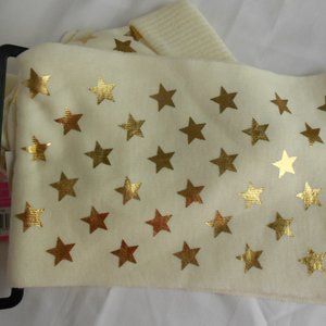 Ivory color with gold leaf stars. Light weight knit , maybe for Southern style winters