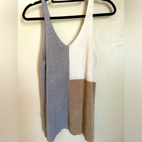 Super cute reversible (front and back) knit tank with white, beige, and grey color block. Light and breezy, perfect for summer!