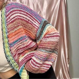 Stay cozy and stylish with this vibrant multicolor striped sweater. Perfect for adding a pop of color to your wardrobe. Size Large.