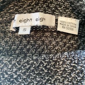 By the brand eight eight eight. A comfortable, warm pullover w/ some weight to it. There is a small hole on the left shoulder as seen in the photos.