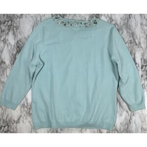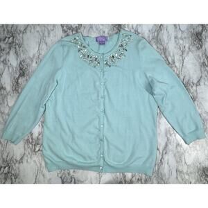 Knit Couture Sweater Womens XS Blue Silk Blend Embellished Cardigan Rhinestone