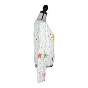 Knit Floral 3-D Embellished Button Front Cardigan in a size medium.