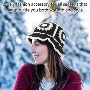 Knit Floral Bucket Hat Fashion Cute Comfy Crochet Bucket Hat For Women