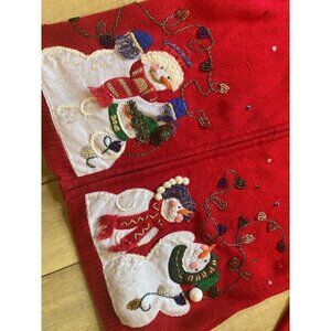 Knit Full Zip Grandma Sweater Cardigan Ugly Christmas Lights Snowmen Red Small