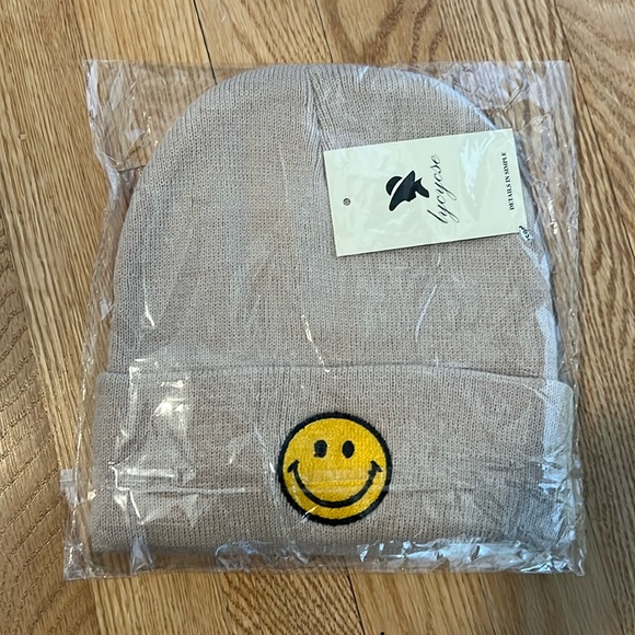 Knit beanie Hat with smiley face patch color is beige