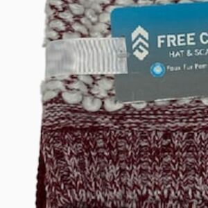 Knit Hat and Scarf Set Burgundy White New 2 Piece Set Pom Pom Hat