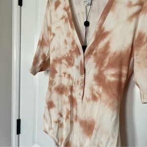 Knit Henley Bodysuit in Tan Tie Dye size Medium NWT Gianni Bini