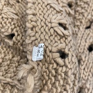 Knit infinity loop scarf. Tan camel color. Soft and cozy. Sweater knit. Long enough to wrap around neck twice. A great chunky, winter accessory for everyday wear.