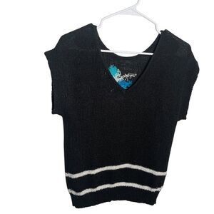 Knit Knacks Sweater Women's XS Black Floral Pullover Vintage Short Sleeve