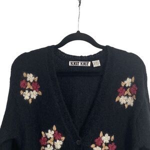 Knit Knit Vintage Mohair Blend Embroidered Cardigan Sweater Black Small