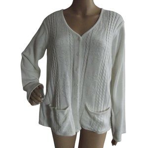 Knit Minded Cardigan Sweater Medium White Cable button front M open snap back