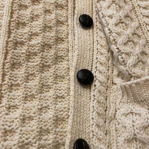 Real wool knit cardigan sweater with black buttons made in Ireland. Size medium.