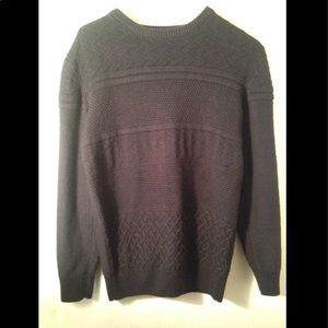 Black sweater from 21 men. Size small. Worn twice in great condition. Has different knit patterns on it. In a few pictures it looks a little red but that's just because I put the light close up to show the details (it's completely black).